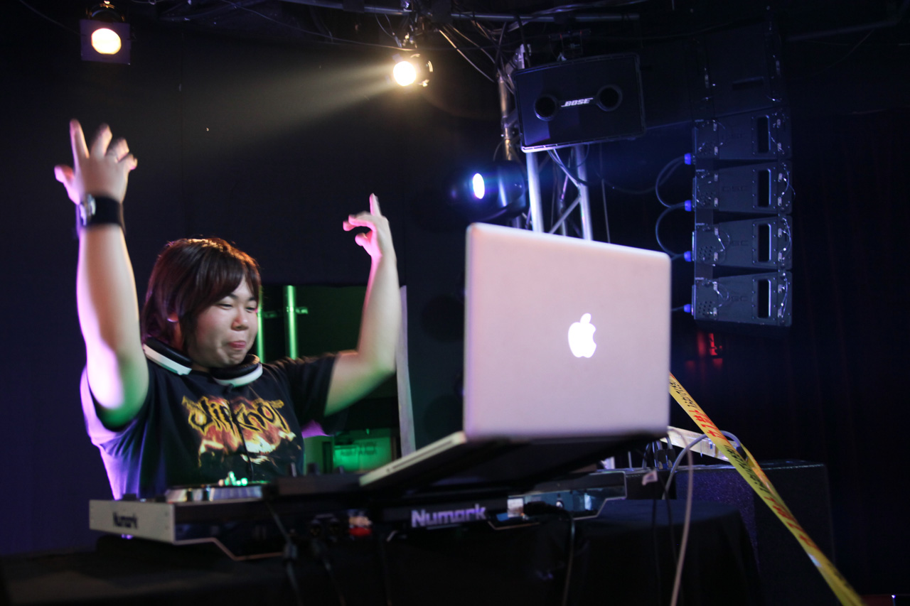 Next DJ is from Osaka. "DJ-MAH as Lady Gabber"